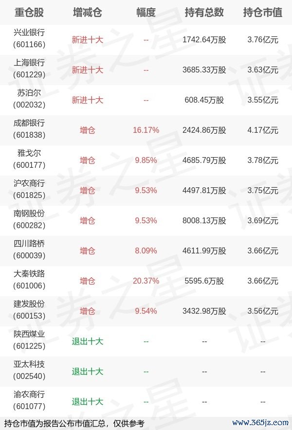 本站消息,4月22日华泰柏瑞基金旗下柳军管理的华泰柏瑞中证红利低波动交易型开放式指数基金公布一季报,近1年净值增长率2.81%。与上一季度相比,该基金前十大重仓股新增兴业银行,上海银行,苏泊尔;并对成都银行增仓337.46万股,为该基金第一大重仓股;陕西煤业趣操盘,亚太科技,渝农商行等退出前十大重仓股;详细数据如下: